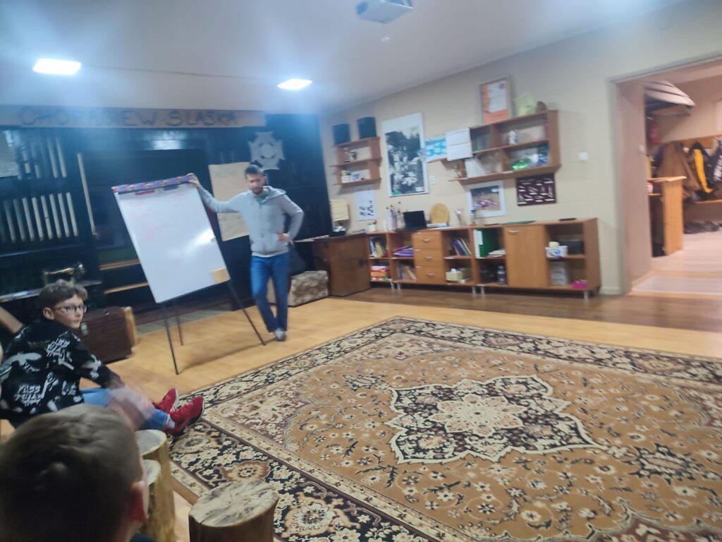 Następnie wyszliśmy na dwór i w grupkach po 2 osoby mięliśmy wymyślić jak ludzie radzili sobie zimą, gdy nie było ogrzewania ani innych rzeczy z teraźniejszych czasów. Na koniec w harcówce o tym opowiadaliśmy.