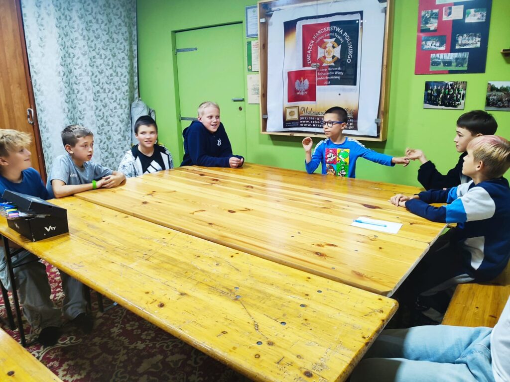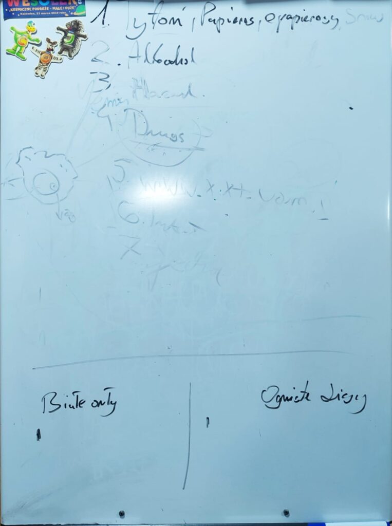 Na zbiórce w czwartek mieliśmy za zadanie wypisać zastępami wszystkie znane nam nałogi. Była to taka mini rywalizacja pomiędzy nami. Rozmawialiśmy też między innymi o ich wadach, o tym jak bardzo są szkodliwe i uzależniające.